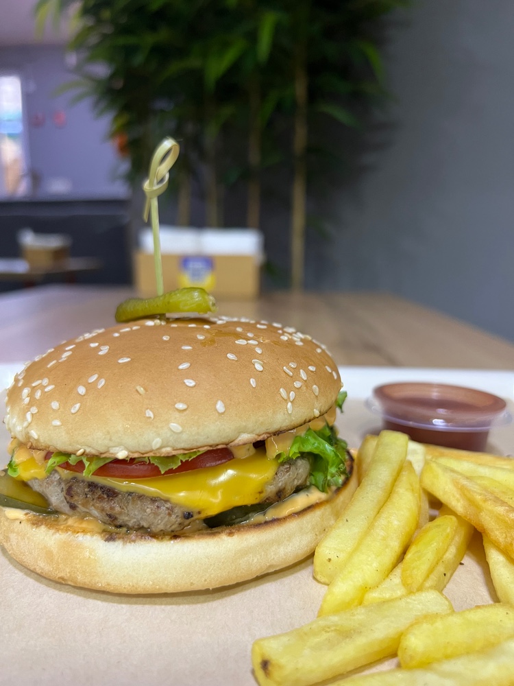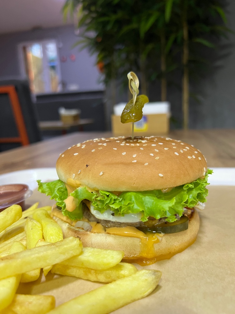 Бургер класичний з маринованим огірком та томатами